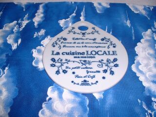裏にはコルクが貼ってある鍋敷きです。パンやチーズをカッティングするのにも使えます。壁にかけられるので使わない時は飾っていてもステキです。1000円でした。 |