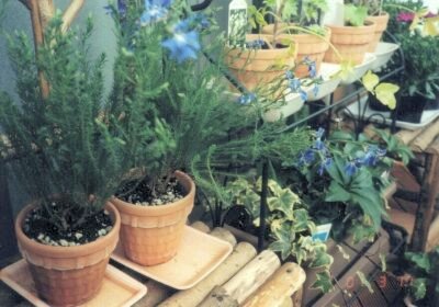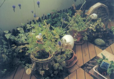友達の結婚式の引き出物を選べることができたので、2段のガーデンシェルフをいただきました。上の段にはレースフラワーとデルフィニュームの苗があります。下の段には年賀状を買ったときに郵便局でもらったチューリップの球根を植えて、手前にクリスマスローズを3つとアイビー:エスターとアイビー:イエローリップルを植えました。 手前の木の椅子の上にあるのは青色の初恋草です。まだ、あまり花が咲いていません。 |