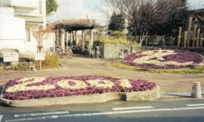 | 近くの阪急の駅の花壇です。2001年はへびどしです。白と紫のミニ葉牡丹で埋め尽くされています。 |