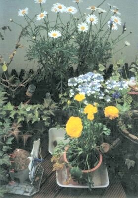 白いマーガレットが満開です。花は次々に咲いて、咲いたら長く楽しめます。純粋な感じの花も好きですが、切り込みの入った葉も大好きです。 白と水色の混ざったネメシアは印象派の点描画のような花がたくさん咲いてふわっと感じがします。 山吹色のラナンキュラスはたった300円で買ったものです。すごく存在感があって、温かくなり始めたベランダをぱっと明るくしてくれます。はじめは固い蕾が日を追うごとに少しずつ広がっていって初めの大きさからは想像がつかないくらい大きくなります。 |